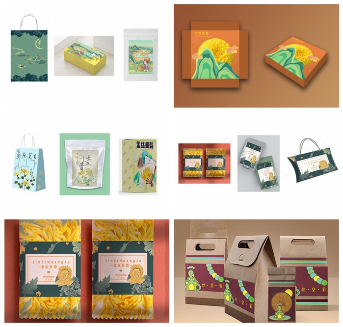 7月15日,经过队员们的共同努力,金丝皇菊的包装设计任务基本完成。紧接着,队员们又开始着手制作金丝皇菊的周边文创。同学们分工合作,有人绘制文创视觉效果图,有人制作包装效果图,也有人制作文创成品的PPT……众人拾柴火焰高,在大家的共同努力下,文创产品的设计取得了明显成效。
