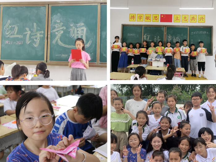 “大哥哥大姐姐们给我们讲课,带我们做游戏,让我们学到了好多知识。我一定要努力读书,争取上大学。”六年级学生张思颖兴奋地说。在为期7天的实践活动中,爱心支教组走进乡村为当地儿童开设艺术文化课、党史文化课、红歌音乐课、巧手绘画课等,向小朋友们讲授各类知识,点燃他们渴望成才的梦想。课程结束后,支教组队员吴狄感慨道:“希望孩子们能够养成热爱学习、自觉学习的好习惯,从小就热爱祖国,心怀理想,成长为一个有爱、有梦想、全面发展的人。”队员们不单单在课堂上认真授课,课下还抓住一切时间与孩子交流互动,走进他们的成长环境,通过心灵的交织搭起沟通的桥梁,努力在孩子们的心里播撒下希望的种子。