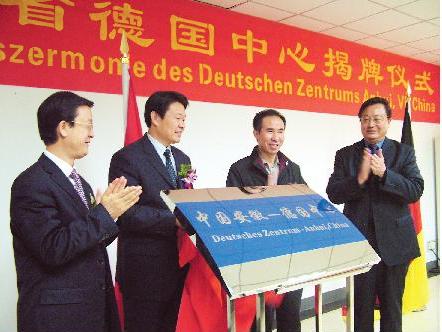 安徽省教育厅厅长程艺(右二),安徽省外 事办公室主任李永胜(左二),合肥市常务副市长张晓麟(左一)、合肥学院党委书记陶登松(右 一)共同为“中国安徽―德国中心”揭牌。