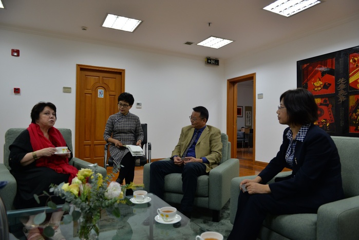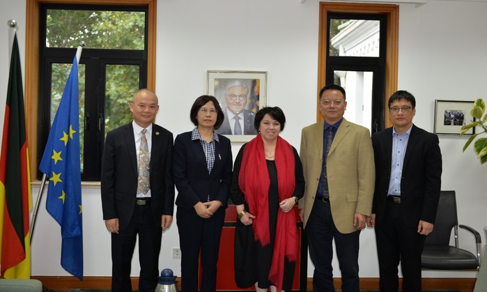 Wu Chunmei gab einen Überblick über die Zusammenarbeit der Universität Hefei mit deutschen Hochschulen und sagte: „Dieses Jahr ist das 40. Jubiläum der Universität Hefei, das 35. Jubiläum der deutsch-chinesischen Zusammenarbeit auf Ebene von Hochschulen und auch das fünfte Jubiläum des gemeinsamen Besuchs der Bundeskanzlerin Angela Merkel und des chinesischen Ministerpräsidenten Li Keqiang an der Universität Hefei, nach deren Anleitungsgedanken sich die Universität Hefei im Moment damit auseinandersetzt, eine erstklassige anwendungsorientierte Hochschule voranzutreiben und die Modelleinrichtung der Bildungskooperation zwischen China und Deutschland aufzubauen.“ Zum Schluss lud Wu Chunmei Generalkonsulin Dr. Christine D. Althauser zum 13. deutsch-chinesischen Symposium zur anwendungsorientierten Hochschulausbildung ein, das Anfang Dezember dieses Jahres in Hefei abgehalten wird.