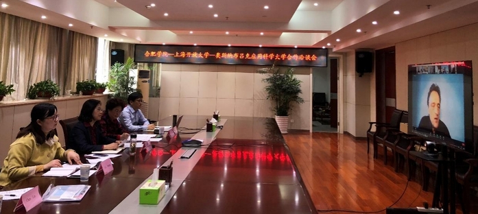 4月16日下午,合肥学院-上海开放大学-奥斯纳布吕克应用科学大学三方合作洽谈会于我校行政楼九楼西会议室召开。合肥学院校长吴春梅、上海开放大学校长袁雯、奥斯纳布吕克应用科学大学校长Andreas Bertram参加了本次线上会议。