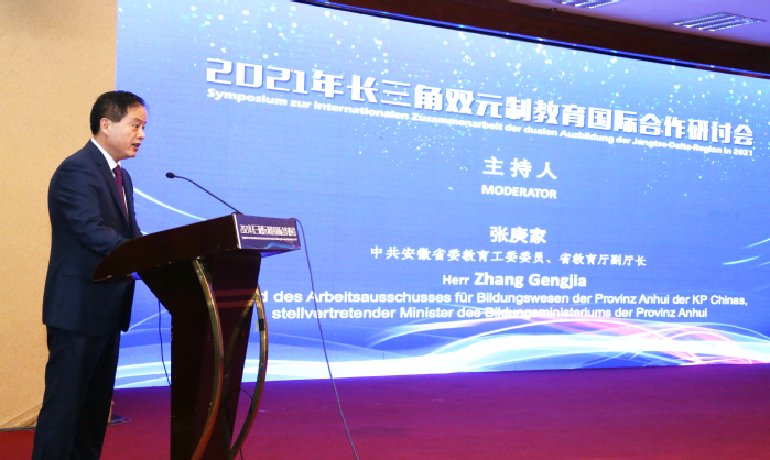 长三角双元制教育国际合作研讨会的召开,将进一步发挥安徽在中德合作、双元制协同培养人才领域的先行优势和先进经验,整合校企合作培养人才在应用型高等教育、高等及中等职业教育领域的资源,推进人才链、产业链、教育链、创新链有机统一和长三角一体化发展战略,服务新阶段现代化美好安徽建设。合肥学院将抓住发展机遇,持续深化双元制高等教育改革,大力推进专业、就业、产业“三业一体”,为省市高质量发展持续输送高素质人才。