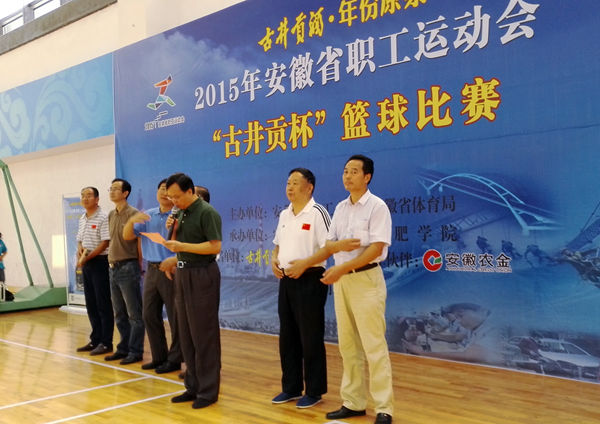 8月27日,由安徽省教育工会、合肥学院承办的2015年安徽省职工运动会篮球比赛在我校体育馆热力开赛。省总工会副主席、省教育工会主席许晓东,省体育局副局长陈海军,合肥学院党委副书记丁明等领导出席开幕式;丁明副书记代表学校在开幕式上致欢迎词。来自各市及行业等26支男子代表队和4支女子球队参加比赛,比赛将于9月1日结束。