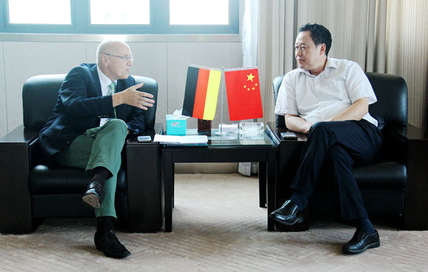 博德维希教授就我校对他在中德物流管理专业授课及在合肥市进行交通安全宣传等活动的周到安排表示感谢。随后,双方就9月下旬欧盟交通委员布尔奇女士将访问合肥学院事宜进行了洽谈。蔡敬民表达了对博德维希教授与布尔奇女士的感谢以及安排好此次活动的决心。他说,布尔奇女士的访问对中国、尤其是对合肥地区交通与教育发展意义重大,我校将会全力以赴安排好相关事宜。