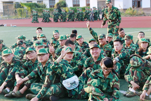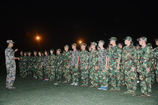 严格的训练中,亦有轻松一刻。随着夜幕的降临,训练场上传来阵阵欢笑声,原来是为增进对彼此的了解,新生们将“非诚勿扰”的游戏融入到了军训中,获选者必须向场下的同学们进行自我介绍。在同学们热烈掌声与欢呼声中,14连的教官演唱了一首红歌,伴着歌声,同学们不由自主地打起了节拍,轻声应和着。“他们都很天真、单纯、可爱,和他们一起很开心。”教官表示,“其实军训是希望给他们精神上的教育,让他们懂得坚持,加强同学们凝聚力,更增加他们的国防意识。”