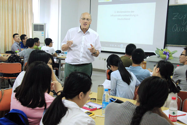 在我校管理系中德合作物流专业授课期间,博德维希教授不仅带来了先进的人才培养理念和专业学术思维,他言语之间透露着德意志民族的严谨与热情,深入浅出的讲解以及风趣幽默的谈吐更令同学们印象深刻。在课堂上,他鼓励同学们积极提问,耐心解答同学们的问题,课后还主动提议与同学们合影留念。