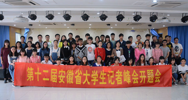 10月17日,第十二届安徽省大学生记者峰会选题会于我校大学生活动室一顺利开展。来自合肥市内的25余所高校代表及我校学生会、学生社团联合会等学生组织代表参加此次开题会。会上,我校学生代表对 “‘互联网+’下的万众创新时代”和“自媒体 守一方净土”两个拟选题进行阐述,60余名校媒学生代表针对选题各抒己见,畅所欲言。