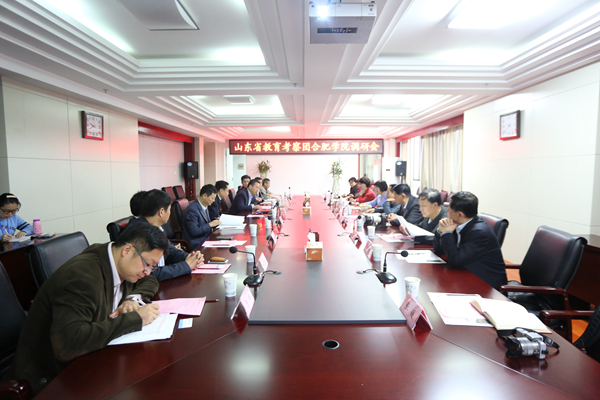 蔡敬民从合肥学院发展状况、创新应用型人才培养的实践探索、国际化合作服务地方经济社会发展、创新应用型人才培养成效等方面介绍了我校的整体情况。其中,他指出,我校于2003年确定的“地方性、应用型、国际化”办学方针,已成为国家教育部指导全国应用型大学建设的原则性意见。近年来,我校通过修订人才培养方案、强化实践教学体系等一系列举措,构建了新型应用型人才培养模式,受到教育主管部门高度肯定,使我校学生的科技创新能力、实践能力和综合素质得到进一步提高。考察团成员、山东英才学院董事长助理张媛表示,合肥学院在推进应用型大学建设方面,不仅有系统的理论支撑,更有丰硕的实践成果,已经探索出一条既符合中国国情又具有自身特色的应用型大学发展之路,为地方高校向应用型转变提供了很好的借鉴和示范。