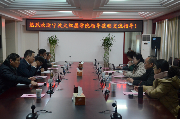 2015年12月30日,宁波大红鹰学院党委书记孙惠敏一行来我校交流访问,校长张文兵、党委副书记丁明等在九楼东会议室热情接待来宾。双方围绕地方高校转型发展进行了深入交流。