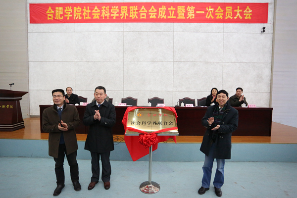为贯彻落实省委、省政府《文化强省建设实施纲要》和《理论社科强省实施方案》精神,不断推进理论创新和学术交流,进一步促进我校哲学社会科学的繁荣与发展。1月22日,我校于图书馆B报告厅召开“合肥学院社科联成立暨第一次会员大会”,学校全体社科联成员约130人出席大会。安徽省社科联党组成员、副主席卜幼凡,合肥市社科联副主席夏元荣等到会祝贺,并与合肥学院社科联主席张文兵校长共同为“合肥学院社科联”揭牌。大会由校纪委书记、学院社科联副主席洪家友主持。副校长、学院社科联副主席陈秀、刘建中出席大会。