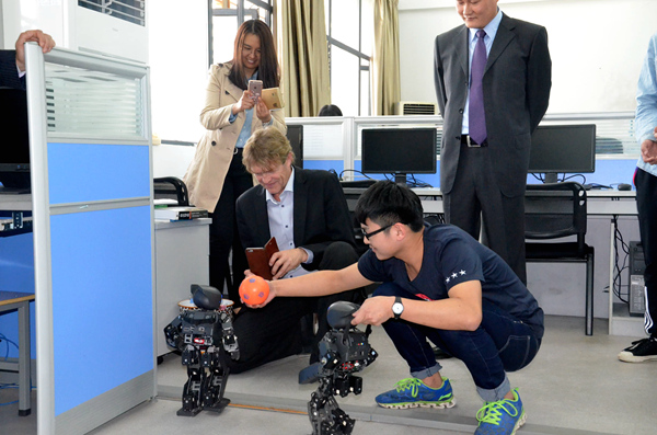 会后,Eigenmann博士与Benoistz博士考察了电子系和计算机系的实验室建设并与两系教师进行了交流。中午,在计算机系教师的陪同下,两位来宾赴科大讯飞考察了我校的校企合作模式与成果。