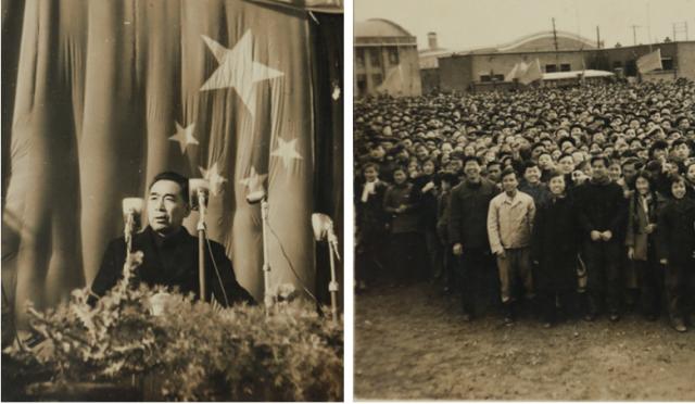 (1957年在天津大学广场听周总理报告,前排着白衣为作者)