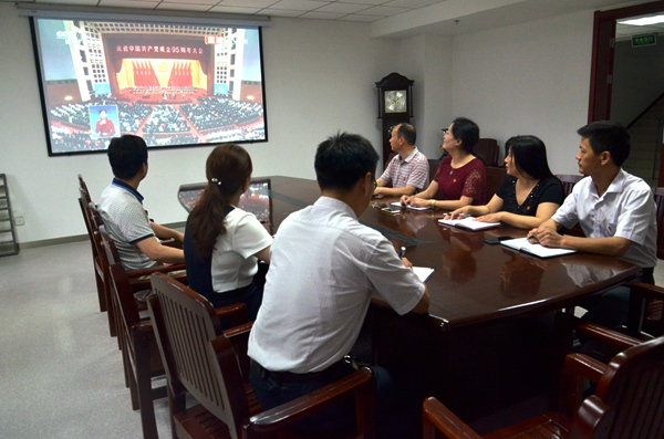 7月1日上午,庆祝中国共产党成立95周年大会在人民大会堂举行。合肥学院各党总支、直属党支部认真组织本单位全体党员同志集体收听收看。在行政楼一楼会议室,党委书记蔡敬民、纪委书记洪家友、副院长刘建中、督导员郑永红同机关第一党总支的党员同志们一起集中收看中国共产党成立95周年庆祝大会的直播,认真学习了中共中央总书记、国家主席、中央军委主席习近平发表的重要讲话。