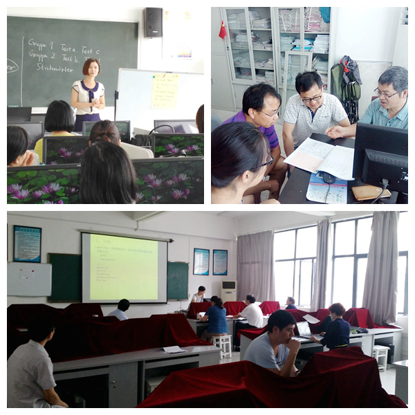 结合学校和系部暑假工作安排,为了更好地迎接审核评估,并进行第七届青年教师基本功大赛选拔,外语系在全系范围内开展听课评课活动。本次课堂教学比赛以“微课竞赛”方式进行。授课结束后,听课教师给与反馈,并进行讨论。系教学工作委员会成员、系教学督导组成员、各教研室教师参与听课评课活动。经选拔,英、日、德、韩各语种选派一名教师参加系部复赛。最终,赵玲丽和汪玮嘉老师以符合我校办学定位的教学设计、灵活多样的授课形式、生动活泼的讲解、大信息量的教学内容,获得第七届青年教师教学竞赛外国语言系复赛的一等奖和二等奖,并代表该系参加“合肥学院第六届青年教师教学竞赛”。宗艳艳和张琛子老师获得三等奖。
