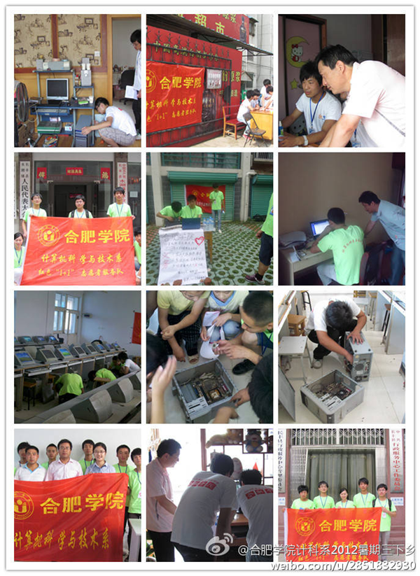 每年计科系红色‘1+1’暑期三下乡志愿者都会与长丰“益民苑”的老人们共同举办“爱心助老人 服务到社区”活动,宣传安全、急救、卫生方面的知识。益民苑”亦是 “艺民苑”,爱才艺的老人们齐聚这里,唱歌、拉二胡、打鼓、练书法,教会了志愿者热爱与坚持,志愿者也给老人们带来了青春活力。“我家的电脑为什么这么卡”, “手机QQ如何使用” ,“我想要网页制作上的指导”。每年志愿者们都会带着这些类似的问题,在当地社区开展义务电脑维修与指导,并对企业员工们开展办公室软件培训,讲解制作PPT技巧,开展义务维修,得到当地居民一致好评。志愿者在水湖公园、锦湖家园、华展、杜集乡等地设立站点,义务维修电脑、指导手机使用、网页设计说明、网络宣传运用等各方面技术指导。同学们还集思广益,利用所学,为企业、政府提供专业技术支持和建议方案,今年志愿者还来到了长丰草莓园,为他们设计出了吉祥物。