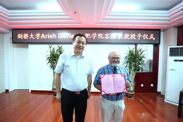 8月16日,英国剑桥大学应用数学和理论物理系教授、分析中心主任Arieh Iserles受聘我校客座教授。南京大学数学系教授吴新元,剑桥大学博士Marcus Webb,合肥学院党委书记蔡敬民出席这次聘任仪式,人事处处长陈爱娟、科技处副处长汪潘义、数理系党总支书记童玉松、数理系主任牛欣与数理系师生共同参与了此次仪式。