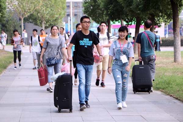 9月7日,2016级的莘莘学子怀揣憧憬走进合肥学院,晴空万里、微风拂面的好天气似乎也正迎接这一张张崭新的面孔。迎新首日,奔走在校园路上的志愿者们也成了校园里一道亮丽的风景线。