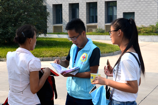 此外,为保证新生入学的健康问题,我校大学生红十字协会专程开辟了服务点,在新生入学时间段安排医疗志愿者,协助校医务室提供应急救援措施,发扬“人道,博爱,奉献”的红十字精神。据学生志愿者介绍,在此之前,多数志愿者曾接受过心脏按压、人工呼吸、心肺复苏等应急救援措施。