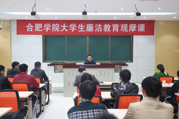为贯彻《教育部关于在大中小学全面开展廉洁教育的意见》文件精神,校纪委和思政部从本学期开始在思想政治理论课中开设廉洁教育课程。10月20日上午,合肥学院大学生廉洁教育观摩课于教学楼35栋312教室顺利开展,我校兼职教授、合肥市人大常委会内务司法工作委员会主任张平主讲,校纪委书记洪家友、纪委副书记姚吉祥、思政部主任胡艳萍以及思政部全体专任教师出席讲座,计算机科学与技术系党总支书记宣跃文及十五名学生代表到场听讲。
