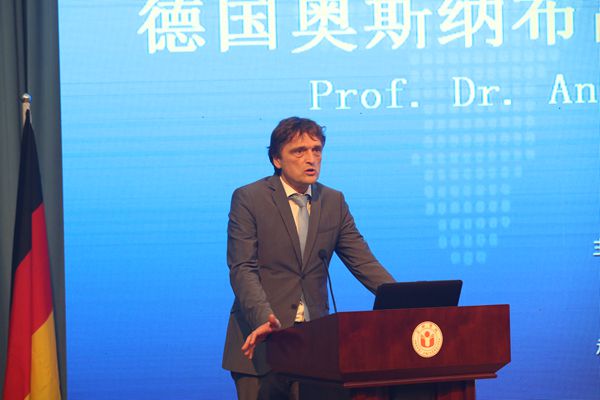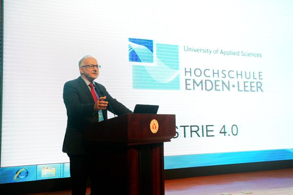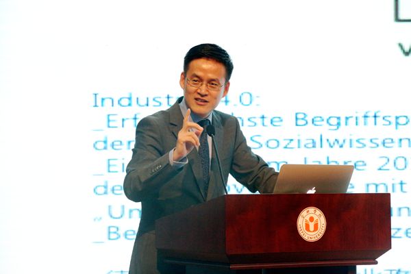 贝尔特拉姆教授和克罗伊茨教授分别以《德国工业4.0:德国应用科学大学的变革与使命》、《应用型大学的教学和科研如何面对工业4.0的挑战》为题作主旨报告。贝尔特拉姆表示,应用型大学的设立能够提高学生、教授跨领域、跨专业的交流与合作能力,有助于加强学生与企业间的联系,促进工业4.0的实现。此外,他还介绍了德国政府为推动教育改革,在应用型大学建设方面实施的的卓越计划、创新高校计划等6大计划。克罗伊茨则回顾了工业1.0到工业4.0的四次变革,介绍了在工业4.0时代,产业化、自主化、控制化、生产网络化的发展过程。他表示,德国工业4.0目前已发展到实施阶段,埃姆登/里尔应用科学大学在课程教学中融入技术、社会等不同因素,建立课题小组,对各学科合作进行探讨,让教学成果深入企业,服务地方经济发展,让产学研紧密结合。