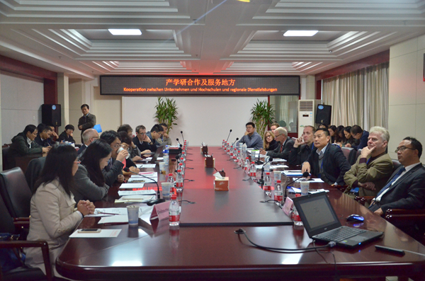会场四由德累斯顿学院常务副校长弗兰克·施瓦策、合肥师范学院副校长李进华、安哈尔特应用科学大学教授史蒂芬·施特劳斯、南阳理工学院校长刘荣英主持。奥斯纳布吕克应用科学大学企业经济学教授迪特哈特·福莱叶,德国中国商会总干事长段炜,上海普尔潘机械工程有限公司总经理温马克,山东英才学院党委书记、校长夏季亭,Festo中国培训与教学部高级教学设计专家刘邦祥分别针对“ 产学研合作及服务地方”这一主题作报告。