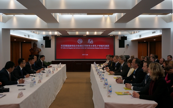 Am 6. März besuchte Alexander Badrow, Bürgermeister der Stadt Stralsund, mit seiner Delegation den Hauptsitz des Konfuzius-Institutes (Hanban). Der Vizedirektor des Hanban, Ma Jianfei, führte ein Gespräch mit der Delegation. Ebenfalls anwesend war Cai Jingmin, Parteisekretär der Universität Hefei. Bereits im Jahr 2016 wohnte die Bundeskanzlerin, Angela Merkel, der Eröffnungszeremonie des Konfuzius-Institutes Stralsund bei, das von der Universität Hefei und der Stadt Stralsund gemeinsam gegründet wurde.