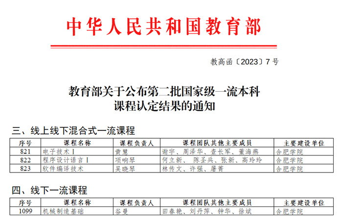近日,教育部公布第二批国家级一流本科课程认定结果,我校4门课程入选第二批国家级一流本科课程。至此,我校共有7门课程获得国家级一流本科课程认定,位居全省同类高校前列。