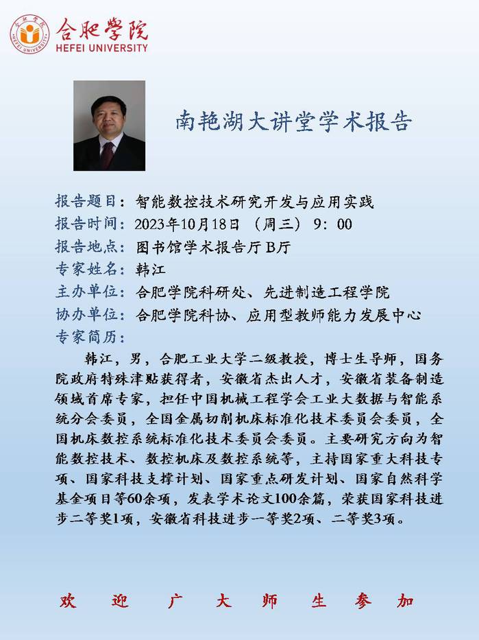 【南艳湖大讲堂】智能数控技术研究开发与应用实践