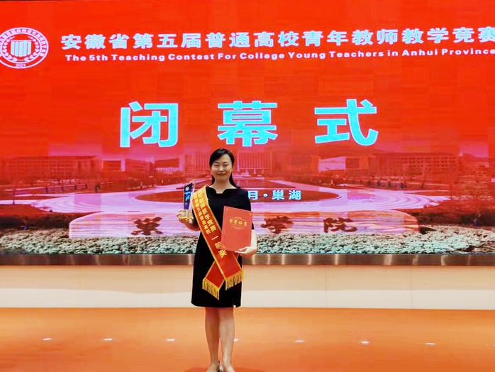 在今年举行的安徽省第五届普通高校青年教师教学竞赛中,徐天戍老师作为我校文科组唯一代表进入决赛,现场抽签环节抽中的正是关于中美政党的课题。凭借多年的理论学习积累和党务工作经验,她自信流畅地完成了课题讲述,并以高质量的教学设计、充实生动的现场讲课赢得了评委组的一致好评,取得了文科组一等奖第二名的好成绩。